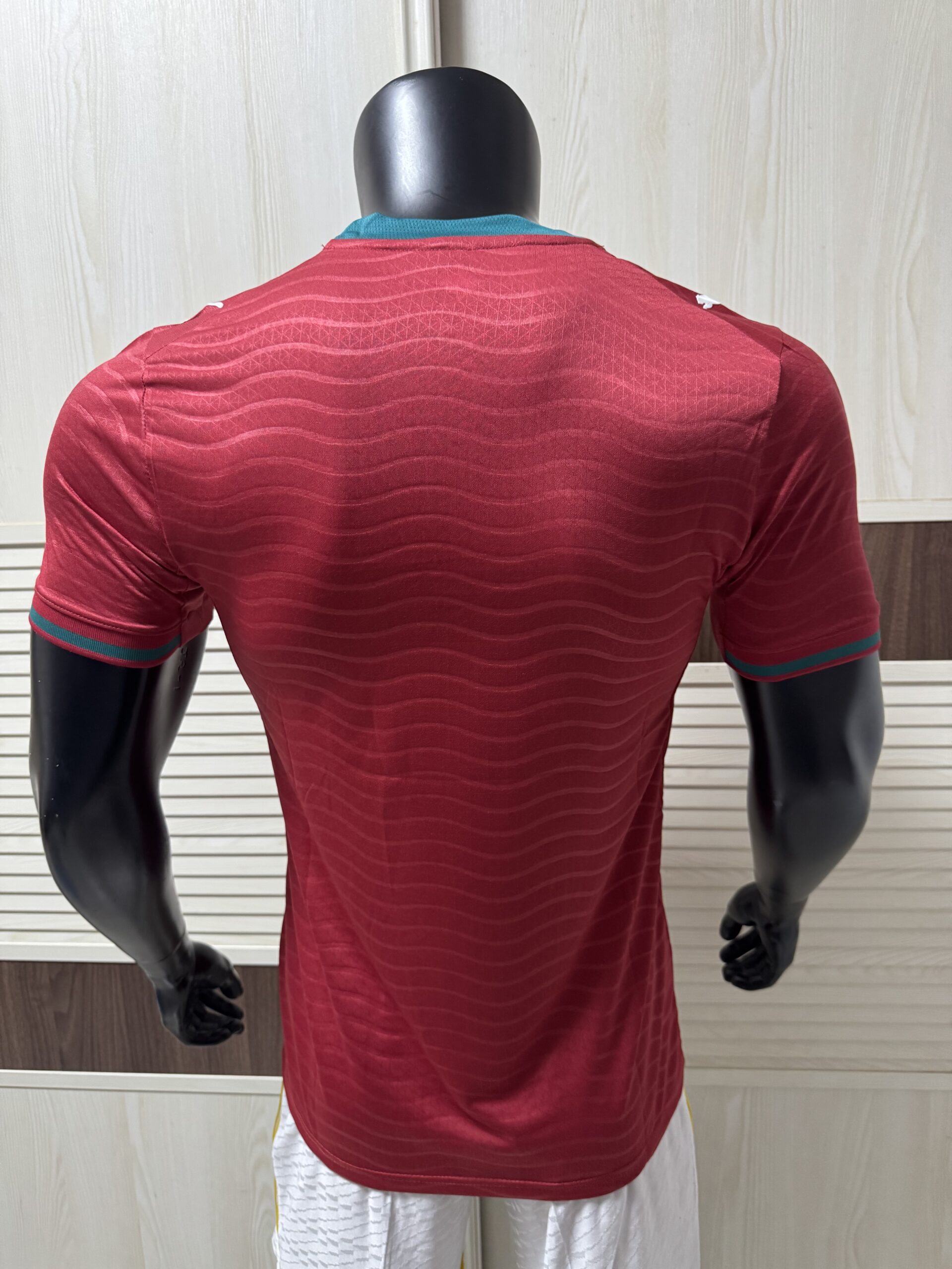 Featuring Portugal’s iconic red color with modern green accents, this jersey represents passion, pride, and football excellence. Made with ultra-lightweight, breathable fabric, it ensures maximum airflow and moisture control to keep you cool and dry during intense matches.